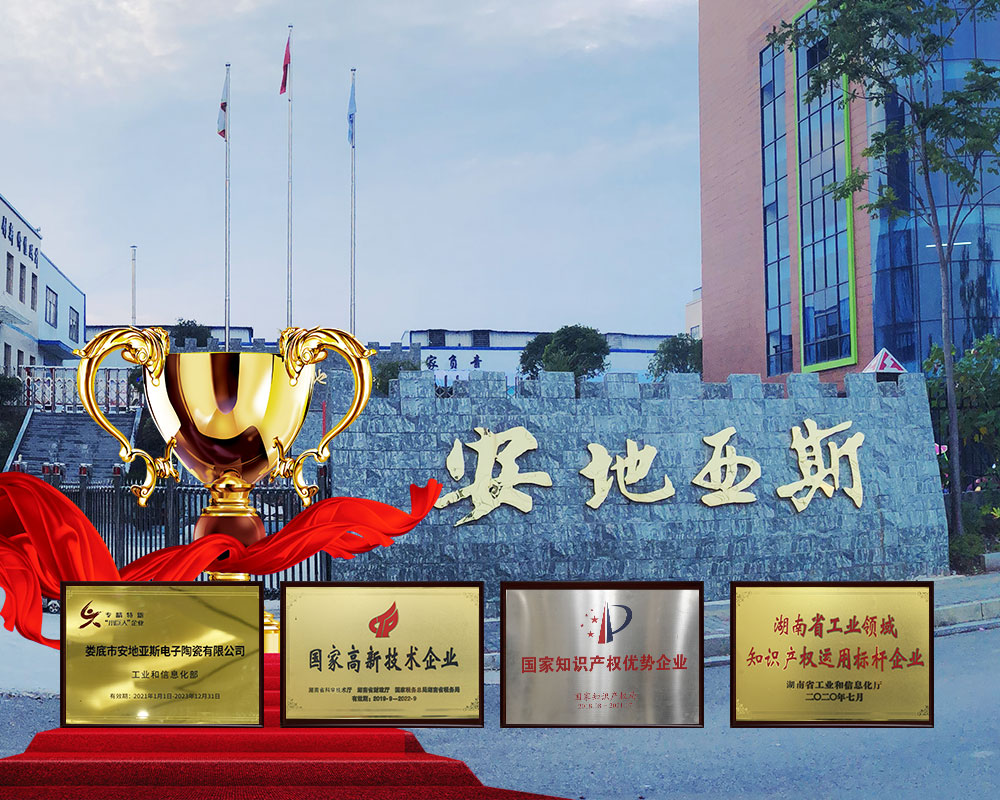 婁底市安地亞斯電子陶瓷有限公司成立于2004年, 是一家集新能源汽車陶瓷零部件、智能傳感器陶瓷、電子信息陶瓷、軌道交通、航空航天陶瓷、石墨匣缽等研發、生產、銷售于一體的國家專精特新小巨人企業,也是一家擁有知識產權和發明專利的高科技企業。